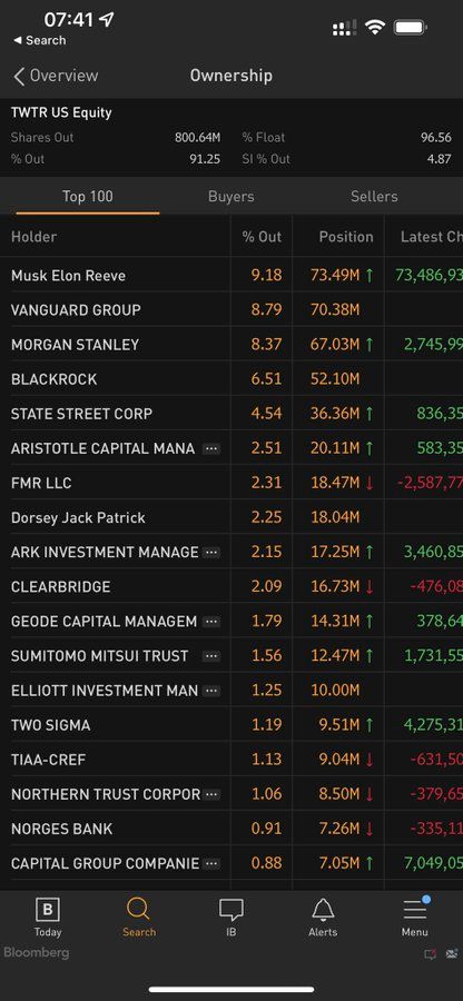Elon Musk, from what I understand, is looking for ways to change the world and the way things are done. This can be an exciting challenge for him. So, there are two routes he can take (1) create his own social media platform from scratch; or (2) acquire another. He chose the latter, which was clear when Twitter filed a 13G disclosing Elon's 9.2% interest. 😲 This shocked everybody. That made him the largest shareholder. Even more interesting, the next individual shareholder Jack Dorsey, owns 2.25% (just for perspective). The purchase costs Elon somewhere near $3bn. We don't know what his plans are, but he doesn't seem to be playing around.
