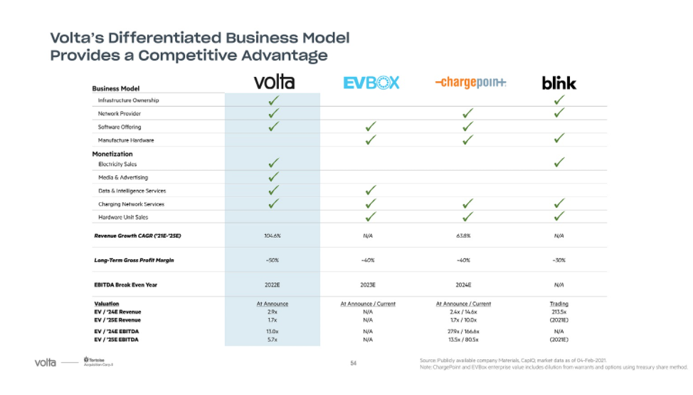 The most attractive, of the competitors, I mentioned is EVgo. EVgo has a solid team and fundamental strategy of focusing on DCFC through 100% sustainable energy... they're clearly thinking of the future. The bonus, on top of all this, is the valuation.