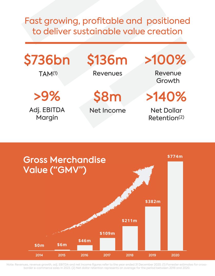 Global E is founder-led... always a good thing. It was founded in 2013 by Amir Schlachet, Shahar Tamari and Nir Debbi β it's an Israeli company. Stalking their LinkedIn profiles, it seems they have technology backgrounds, but this is their first entrepreneurial venture. But, with investors like Shopify backing them, it's a bit more comforting. The Israeli tech scene is probably still under many people's radars, so I wouldn't underestimate them. They've launched in several countries, and achieved impressive Gross Merchandise Value (GMV) growth.