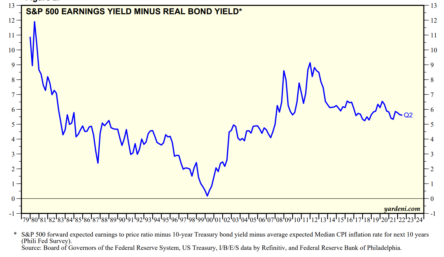 However, if we do see earnings yield minus real bond yields approach zero, I'm running for the exits with all my chips β as anyone should have done in 2000. I'm not sure if that ever happens again, tbh, since after 2000 we entered a completely different era of monetary policy. The Fed's Stock Valuation model, coined by Yardeni, might not be as relevant anymore. However, I'll keep an eye on it.
