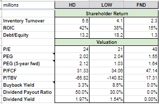 The metrics above tell me there is likely a bit higher upside (though with some additional risk) to Lowe's, which is congruent with the story we've been building. One of the main things that stick out to me, for both companies, is the level of debt. I usually don't like investing in companies with such elevated levels of debt, because this brings another set of risks relating to interest rate sensitivity. However, Lowe's buyback yield is very impressive, and shows the confidence they have in their own growth story.