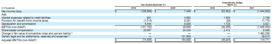 Because it's so hard to forecast their revenues and earnings, I'll focus on looking at historical results. Robinhood had a profitable Q1 2021 if we ignore one-time items, such as the "Change in fair value of convertible notes and warrant liability" (which relates to the debt they raised following the Gamestop saga), legal settlements, etc. Their adjusted EBITDA is over $100m.