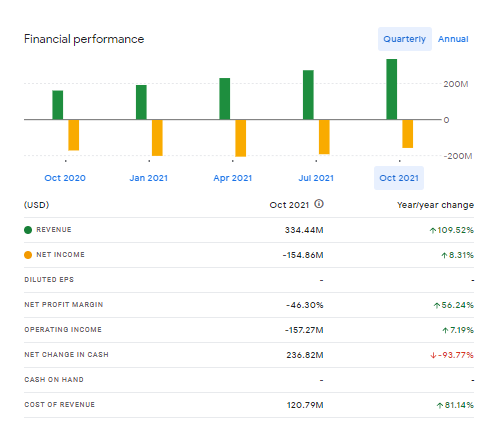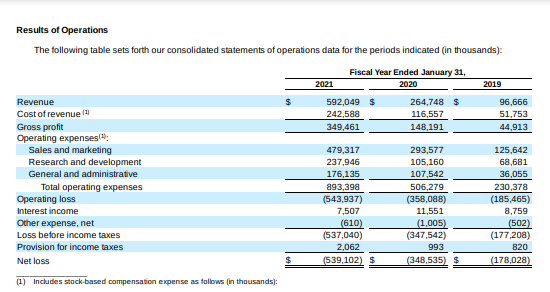 The first thing we notice about Snowflake is that it's not profitable. It's been reporting significant losses. This isn't a company that I can immediately look at and say that it is on a path to profitability. Can it get there? Sure. But, it's impossible for me to know when.