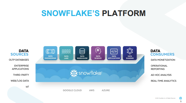 Snowflake offers a data lake and warehouse platform, which cuts the cost of ownership for enterprises and more importantly is interoperable among different public cloud providers.