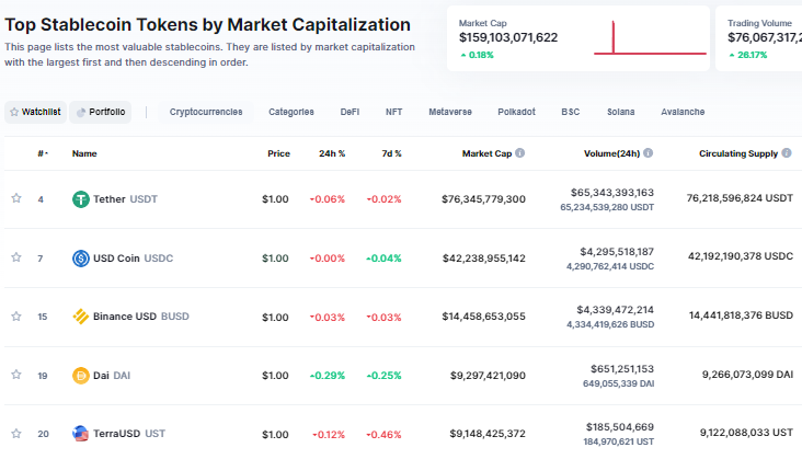 Stablecoins are cryptocurrencies where the price is designed to be pegged to a cryptocurrency, fiat money, or to exchange-traded commodities. – Wikipedia