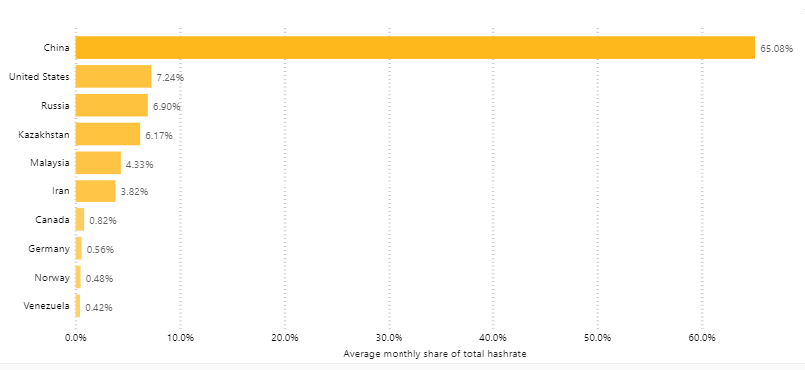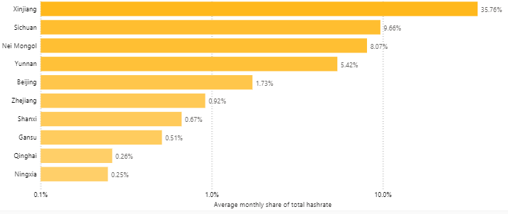 So, how much mining is actually done in Xinjiang, where the power outage took place? From the chart below, you can see it is actually the #1 Bitcoin mining region, controlling 35% of all mining.